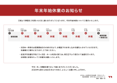 年末年始休業についてご案内いたします。